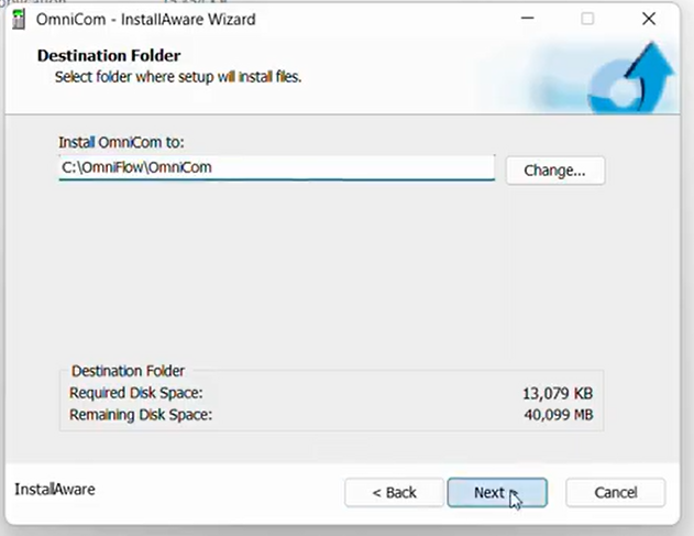 Chọn thư mục cài đặt OmniCom
