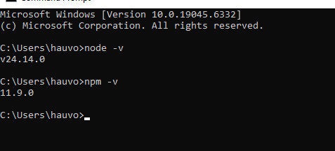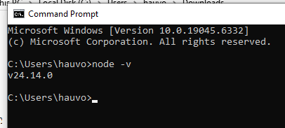 v24.14.0) - Hiển thị version của npm (ví dụ: