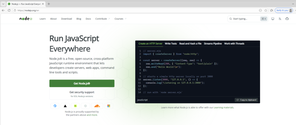 Truy cập trang chính thức của Node.js
