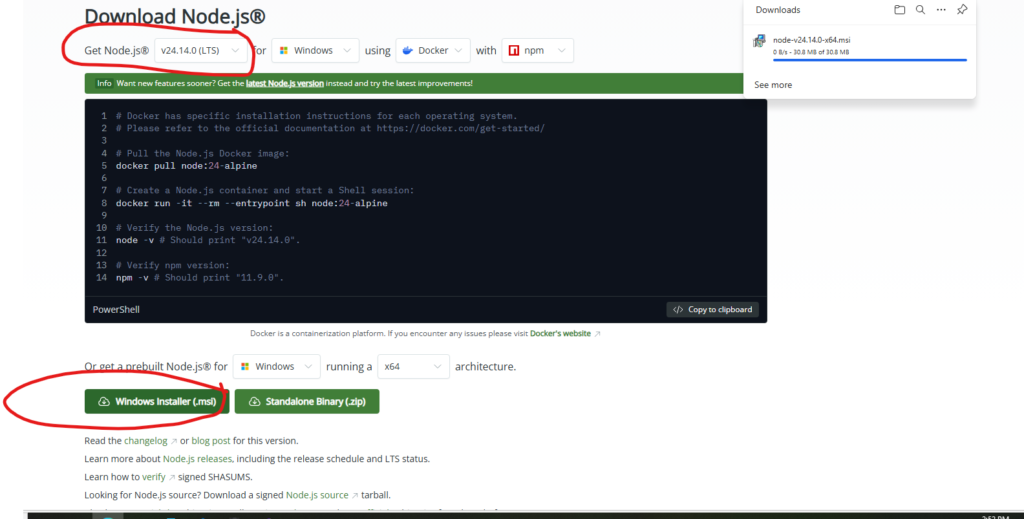 Tải Node.js phiên bản phù hợp