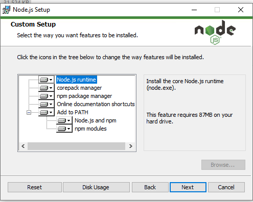 - Cài lại Node.js và tick Add to PATH