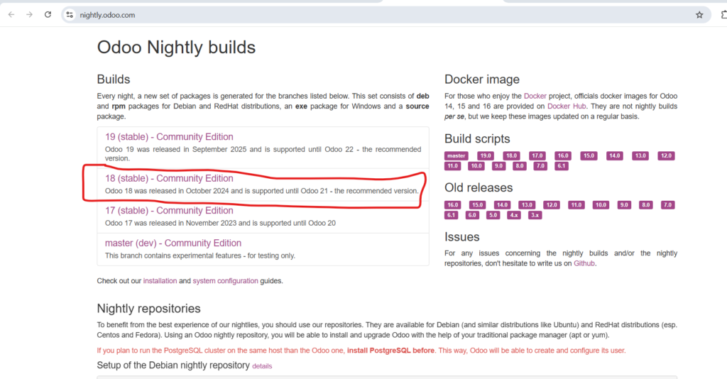 1. Tải bộ cài đặt từ kho Odoo Nightly