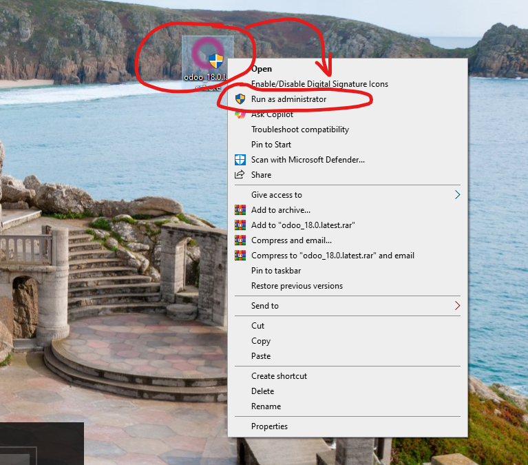 Sau khi tải về, nhấn chuột phải vào file .exe và chọn “Run as administrator”. Bước này cực kỳ quan trọng để đảm bảo trình cài đặt có đủ quyền thiết lập các dịch vụ hệ thống (Services) và PostgreSQL.