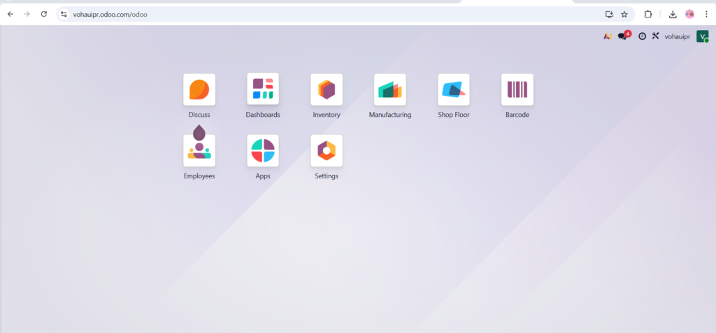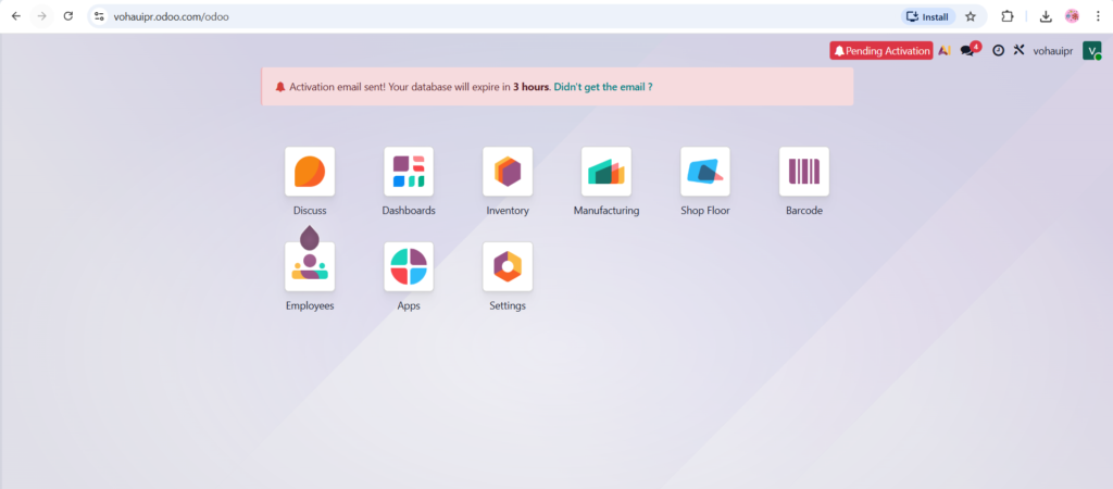 Khi hoàn tất, nhấn “Go to [yourcompany]https://www.google.com/search?q=.odoo.com” để vào giao diện quản trị chính.