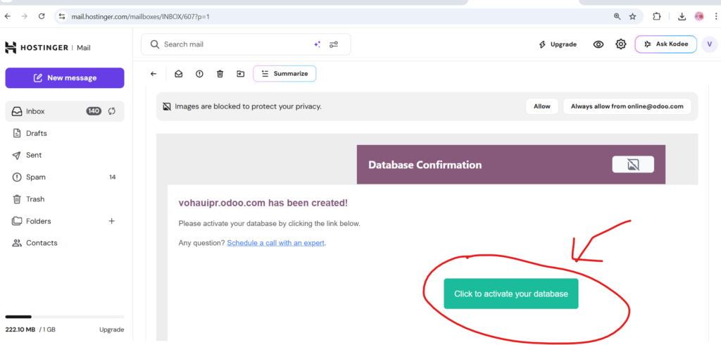 • Nhấn nút “Click to activate your database” để xác thực quyền sở hữu.