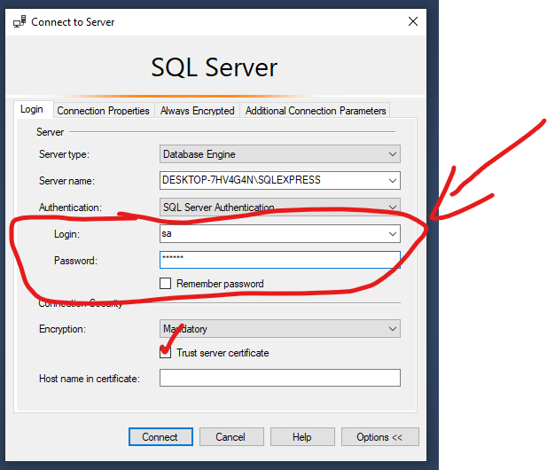 sa. - Password: Nhập mật khẩu bạn vừa thiết lập ở bước trên.