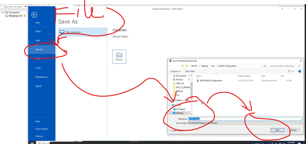 • Chọn thư mục lưu trữ trên máy tính, đặt tên file (ví dụ: YDW Project) và nhấn Save.