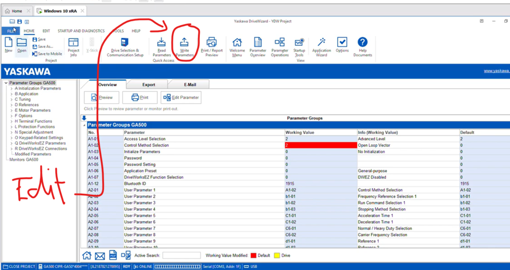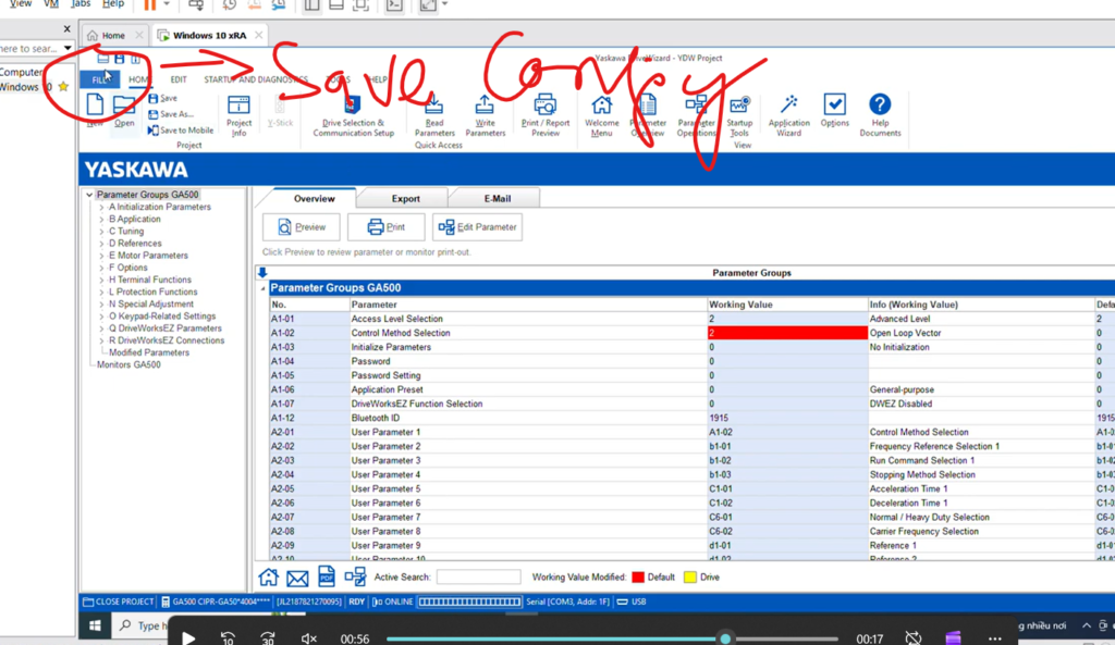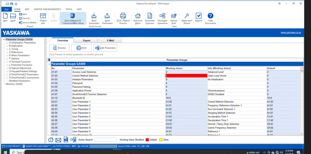Hướng dẫn chi tiết: Kết nối, Giám sát và Cài đặt Biến tần Yaskawa GA500 bằng DriveWizard