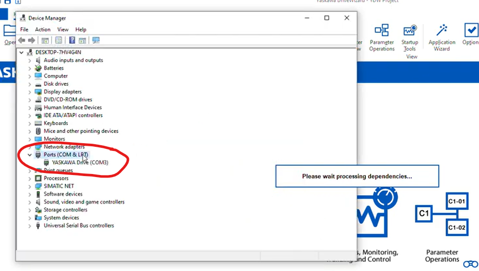 • Xác nhận dòng YASKAWA Drive đang hiển thị cổng nào (Ví dụ trong hình là COM3).