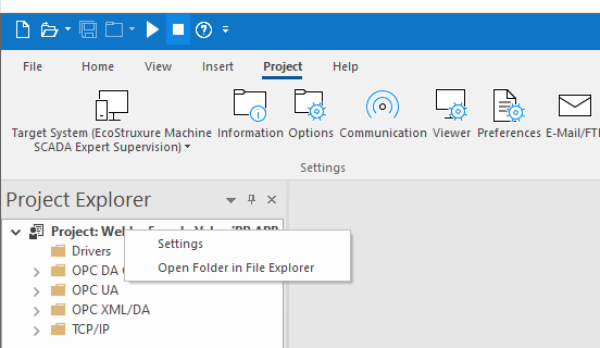 Khi mở một project cũ trong Machine Expert SCADA, bạn thực hiện: