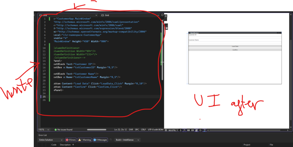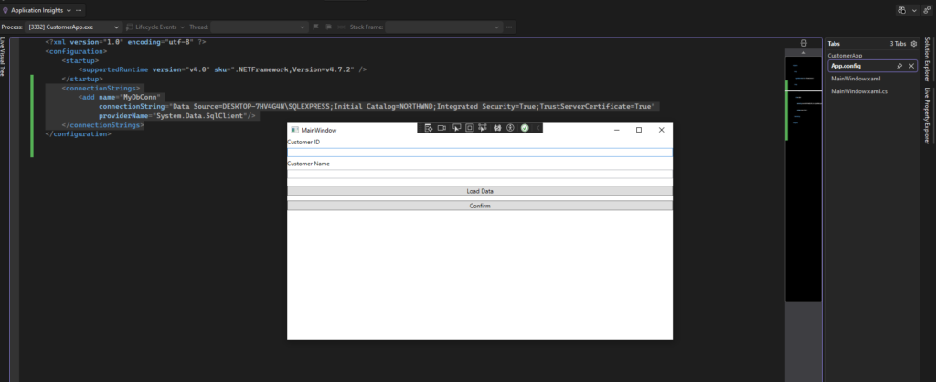 StackPanelhoặcGridđể bố cục các thành phần (như hình 3 và 4 bạn đã mở). - TextBlock: Hiển thị nhãn như “Customer ID”, “Customer Name”.