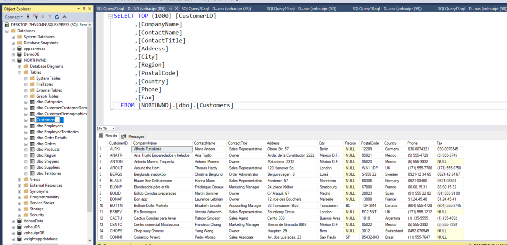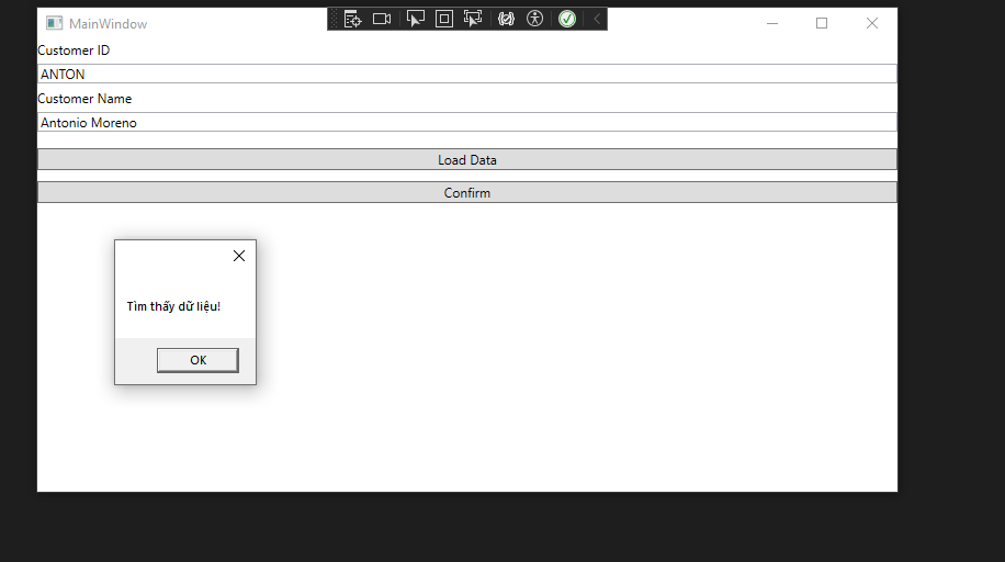 Trước khi chạy App, hãy đảm bảo database của bạn đã có dữ liệu (như hình 12.2). Bạn có thể kiểm tra bảng Customers trong database NORTHWND để lấy các mã ID mẫu như ANTON hoặc ALFKI.