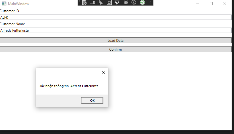 MessageBox.Show("Xác nhận thông tin: " + txtCustomerName.Text);