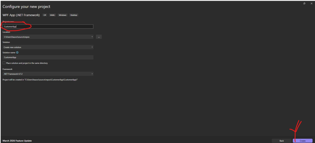 1. Cách tạo mới dự án WPF App (.NET Framework) trong Visual Studio