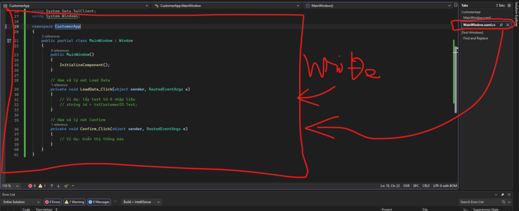4. Viết code xử lý logic trong MainWindow.xaml.cs