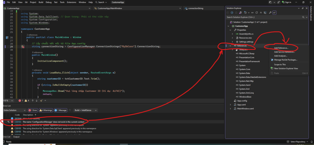 Lỗi 1: “ConfigurationManager does not exist in the current context” (CS0103)