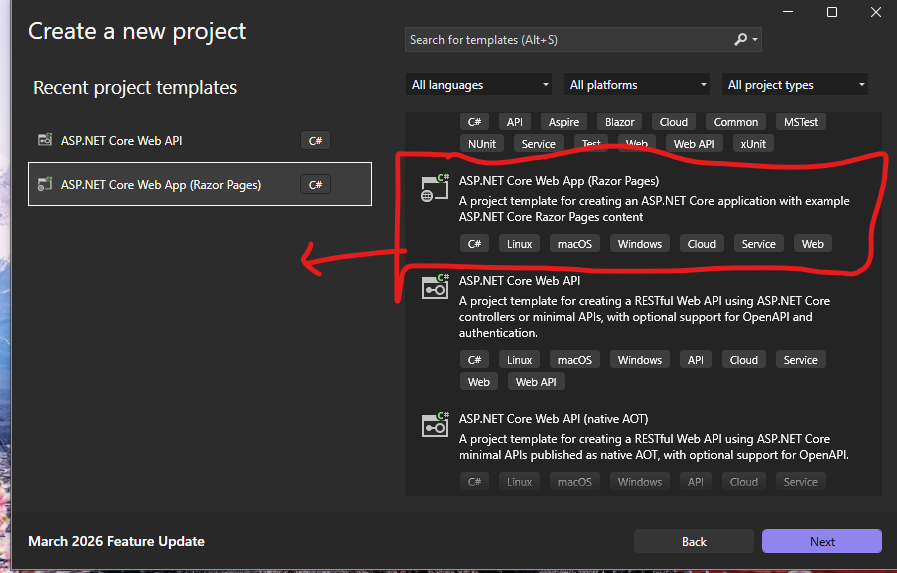 Để bắt đầu, chúng ta cần mở Visual Studio và chọn template ASP.NET Core Web App (Razor Pages). Đây là một framework mạnh mẽ giúp tách biệt rõ ràng giữa logic xử lý dữ liệu và giao diện hiển thị.