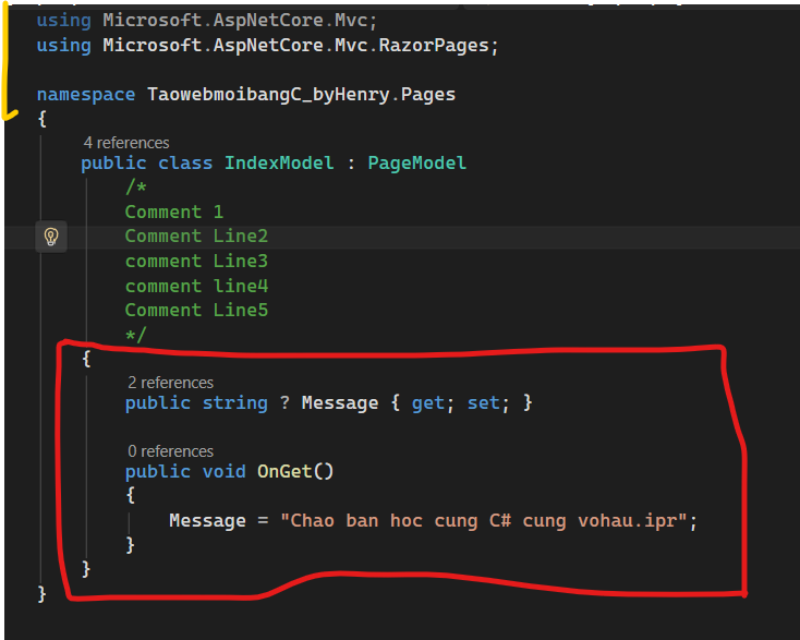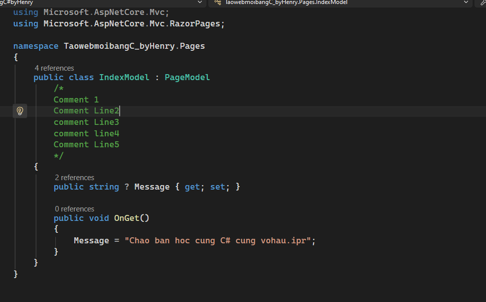 3. Cách viết Comment trong Razor Pages và C#