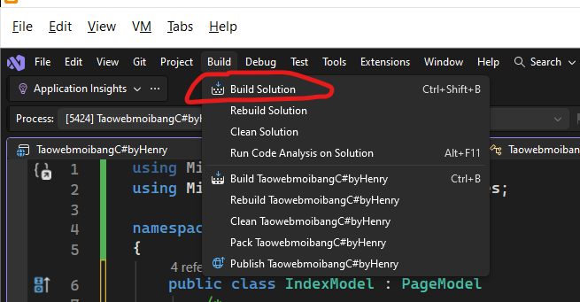 1. Vào menu Build > chọn Build Solution (hoặc nhấn Ctrl + Shift + B) để trình biên dịch kiểm tra lỗi.